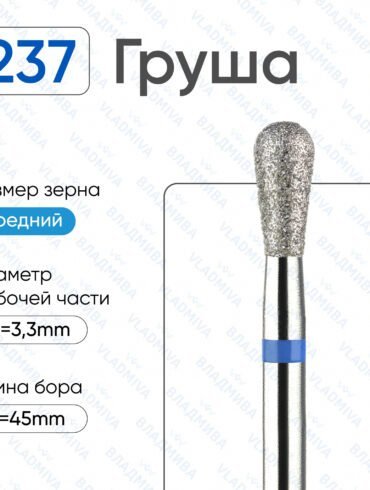 Фреза алмазная пламя синее закругленное 2,3 мм, средняя зернистость. Фреза представляет собой специальное маникюрное приспособление, вытянутая форма делает ее исключительно