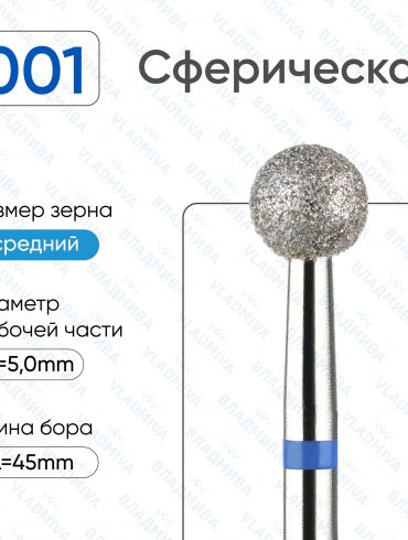 Бор алмазный шаровидный, средней зернистости. Применяется в аппаратном маникюре и педикюре для: Придание формы свободному краю ногтя. Обработка трещин. Обработка
