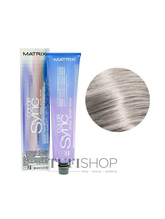 Тонер безамиачный для волос Matrix Color Sync обладает тонирующим эффектом. Можно использовать как и для для осветленных волос, так и для не окрашенных перед покраской. Улучшает цвет, освежает, заполняет цветом. Особенность тонера Матрикс в том, что его сроки действия минимальные, в основном до пяти минут. Безамиачный тонер для волос Matrix можно использовать для простого тонирования, начального тонирования, а так же для изменения цвета уже окрашенных волос. По текстуре, тонер напоминает крем-гель, что существенно облегчает нанесение средства на волосы.